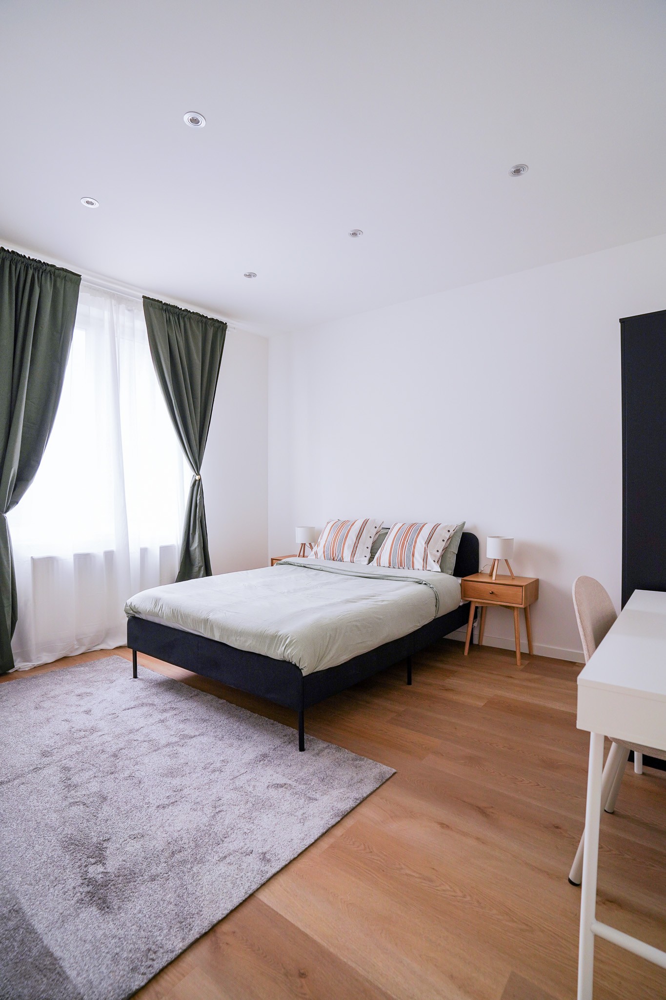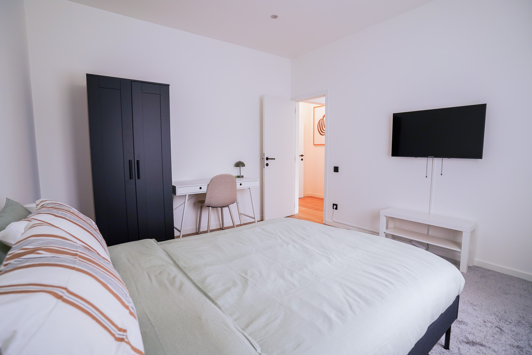 La chambre est meublée avec soin (lit double, bureau, armoire) et est prête à vous accueillir.