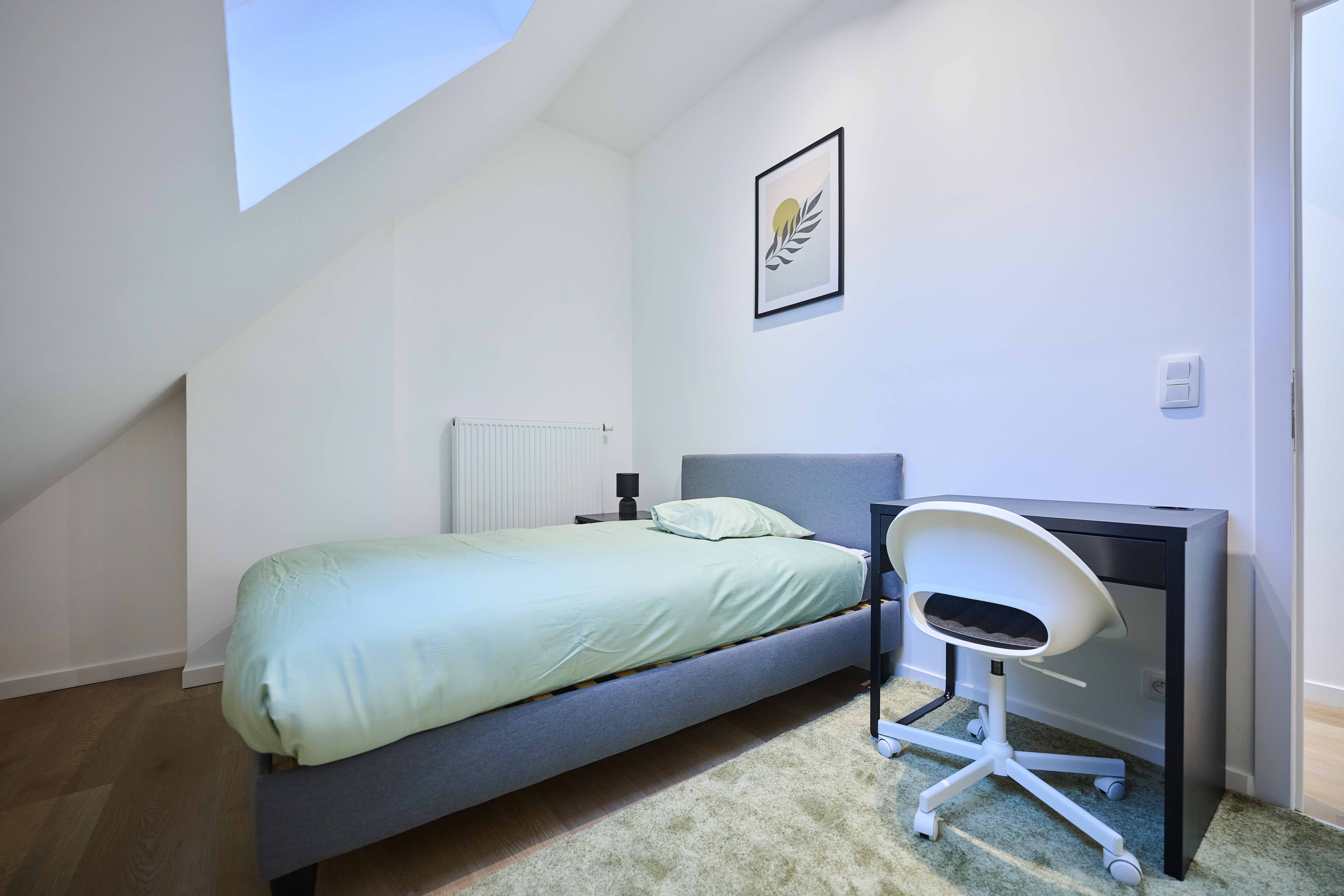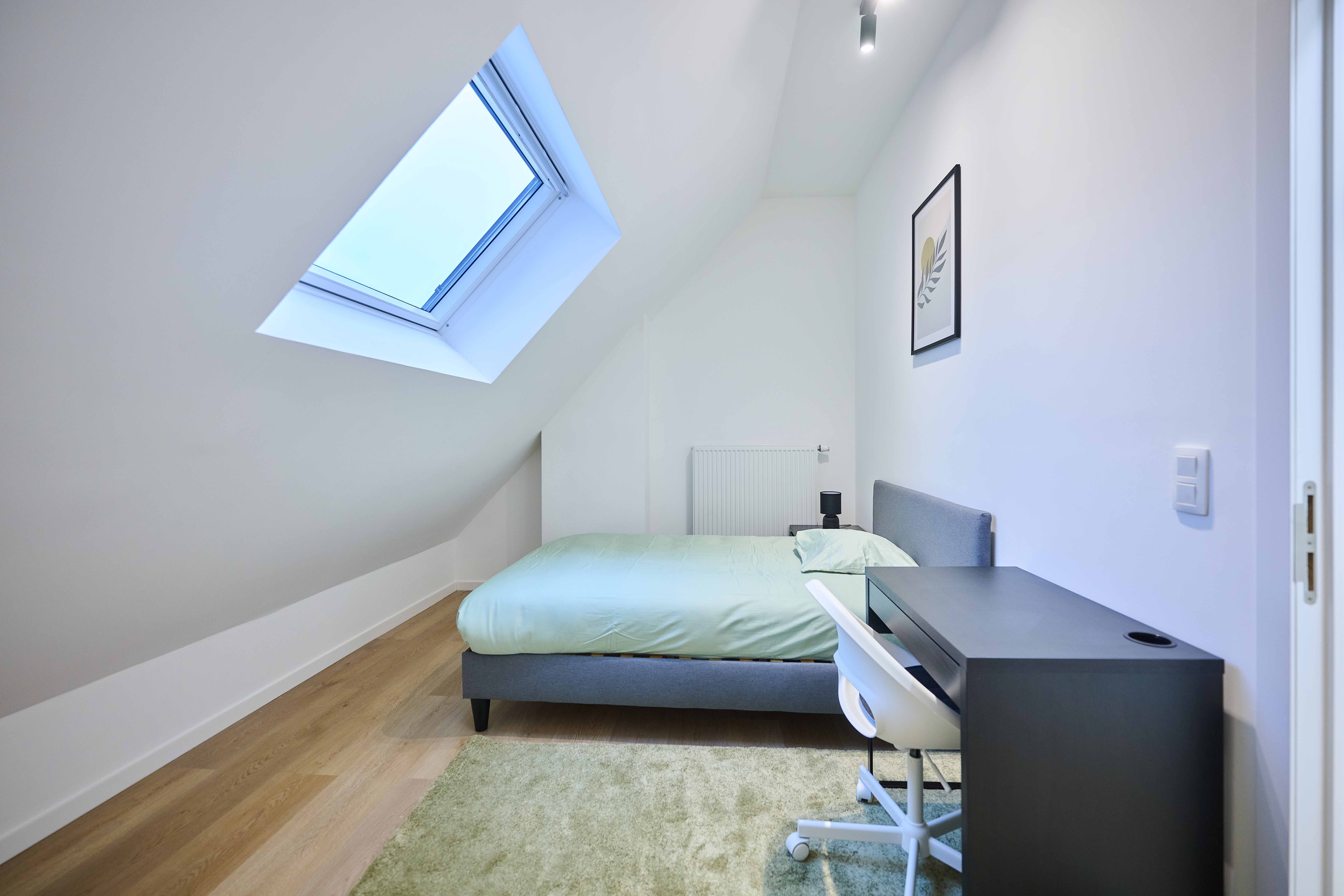 Mooie kamer van 9 m² op de 2e verdieping van een volledig gerenoveerd huis in Anderlecht.